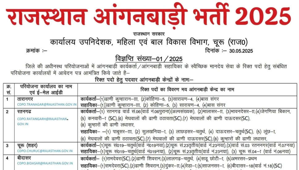 राजस्थान आंगनबाड़ी भर्ती 2025: आवेदन प्रक्रिया और महत्वपूर्ण जानकारी