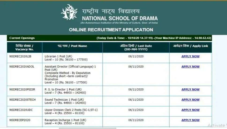 NSD में हिंदी अनुवादक, प्रबंधक और अन्य पदों के लिए आवेदन शुरू, जानें योग्यता और चयन प्रक्रिया