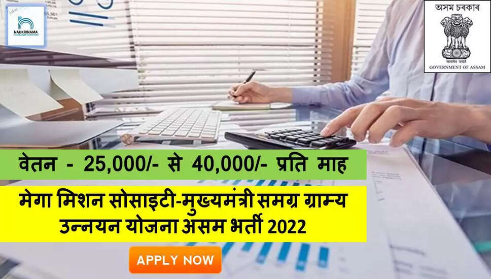 Government Jobs 2022 - मेगा मिशन सोसाइटी-मुख्यमंत्री समग्र ग्राम्य उन्नयन योजना असम (MMS-CMSGUY असम) ने एकाउंट्स सहायक के पद को भरने के लिए, युवा और योग्य उम्मीदवारों से आवेदन मांगे है। यदि आपने कंप्यूटर में डिप्लोमा, एम.कॉम डिग्री प्राप्त कर ली और आप कई दिनो से सरकारी नौकरी की तलाश कर रहें है, तो आप इन पदो के लिए आवेदन कर सकते है।