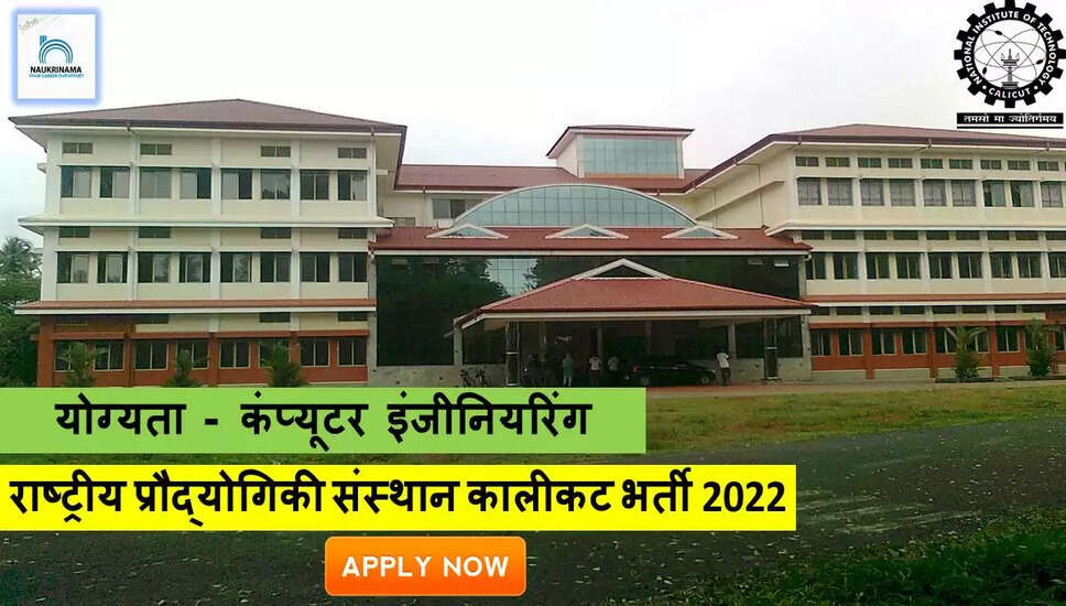 Government Jobs 2022 - राष्ट्रीय प्रौद्योगिकी संस्थान कालीकट (NIT कालीकट) ने सहायक के पद को भरने के लिए, युवा और योग्य उम्मीदवारों से आवेदन मांगे है। यदि आपने कंप्यूटर इंजीनियरिंग में डिप्लोमा डिग्री प्राप्त कर ली और आप कई दिनो से सरकारी नौकरी की तलाश कर रहें है, तो आप इन पदो के लिए आवेदन कर सकते है।
