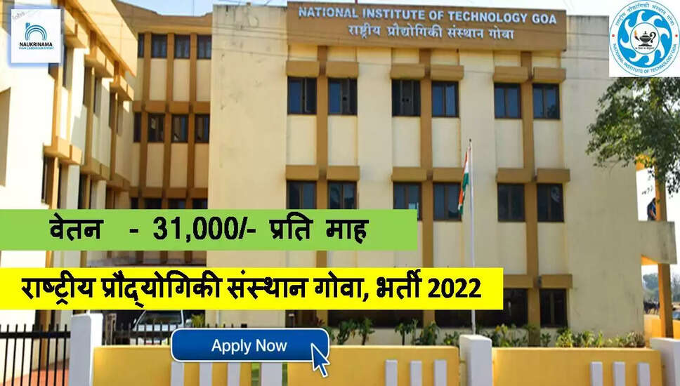 Goa Jobs 2022- राष्ट्रीय प्रौद्योगिकी संस्थान गोवा में जूनियर रिसर्च फेलो के पद पर भर्ती, 31000/- मिलेगा वेतन