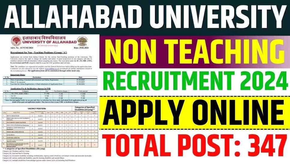 इलाहाबाद विश्वविद्यालय भर्ती 2024: एमटीएस, जूनियर कार्यालय सहायक और अन्य पदों के लिए आवेदन करें