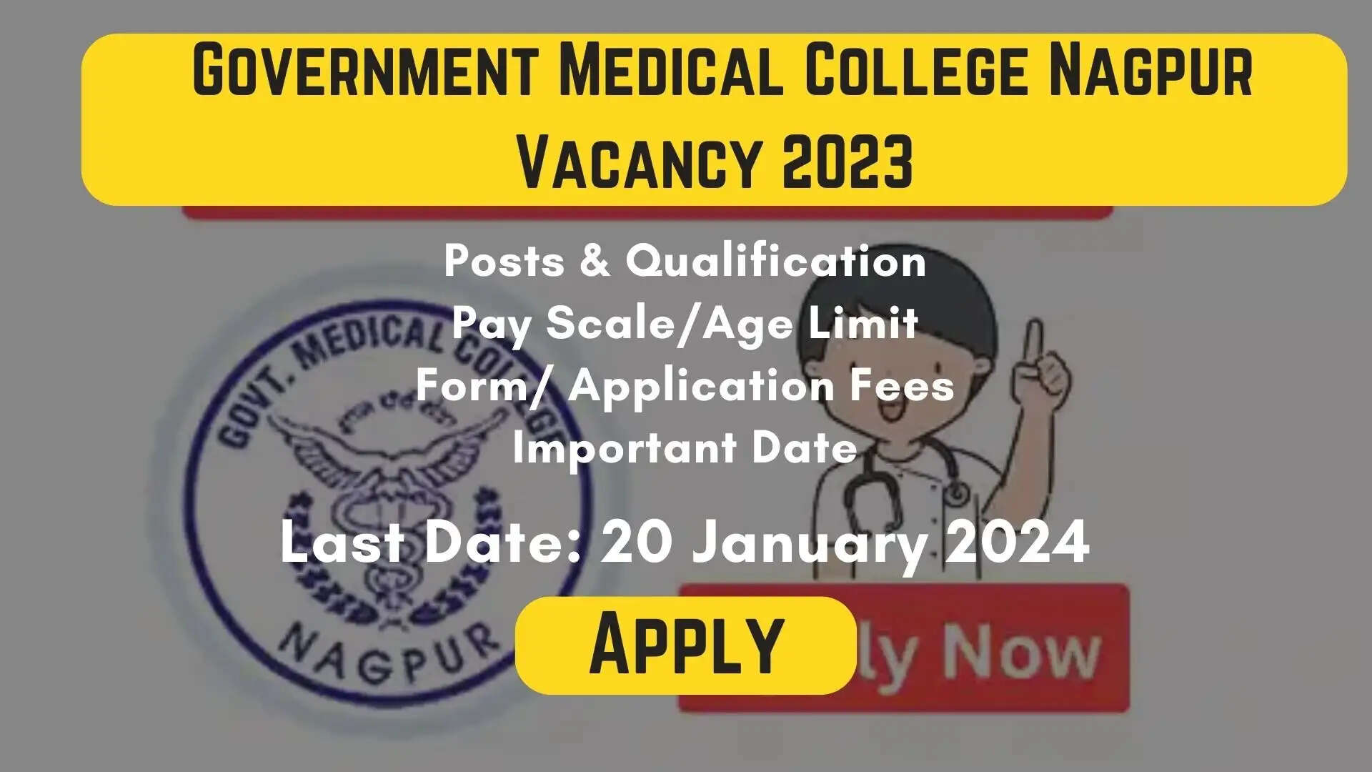 गवर्नमेंट मेडिकल कॉलेज (जीएमसी), नागपुर ने ग्रुप डी पदों के लिए रिक्तियों की घोषणा की है। पात्रता मानदंडों को पूरा करने वाले उम्मीदवार अधिसूचना की समीक्षा कर सकते हैं और उसके अनुसार आवेदन कर सकते हैं।
