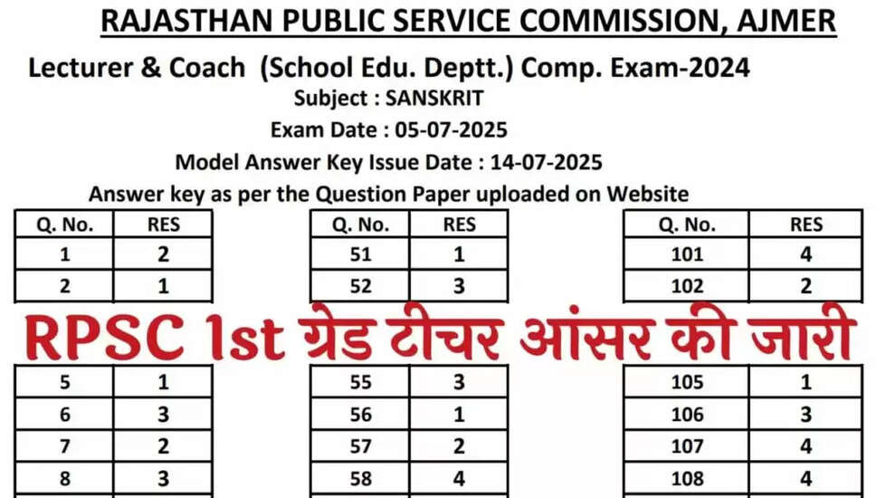 आरपीएससी फर्स्ट ग्रेड टीचर परीक्षा 2025: उत्तर कुंजी और महत्वपूर्ण जानकारी