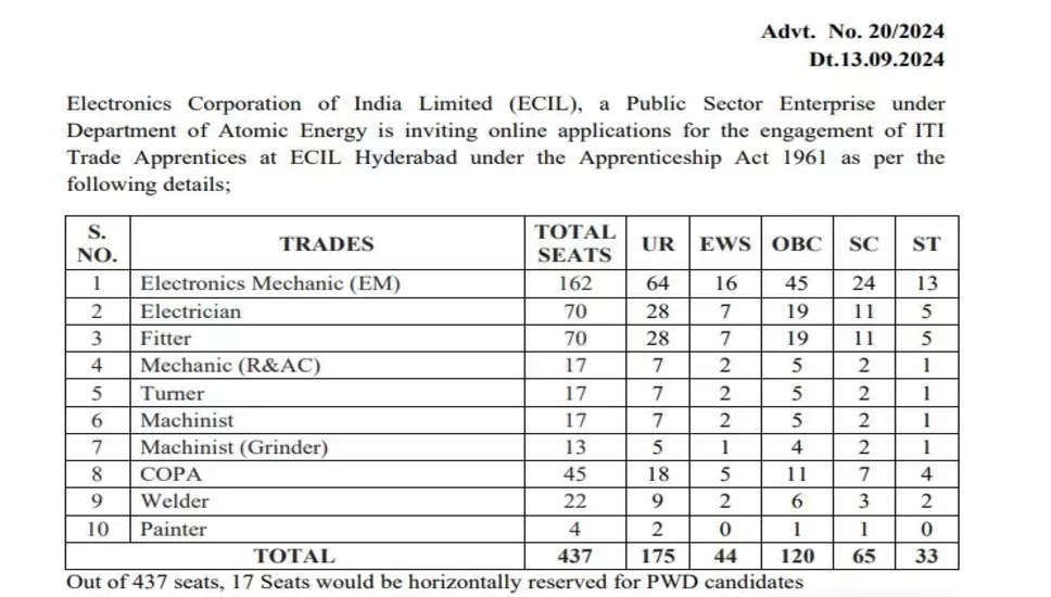 ECIL भर्ती 2024: ITI ट्रेड अपरेंटिस के 437 पदों के लिए ऑनलाइन आवेदन आमंत्रित