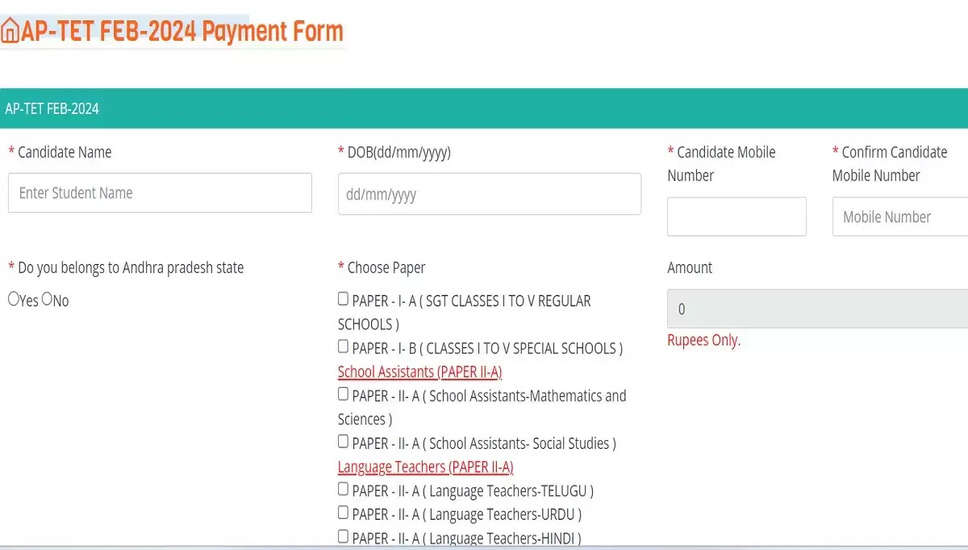 AP TET फी पेमेंट फॉर्म 2024 लाइव: आवेदन शुल्क भुगतान लिंक उपलब्ध
