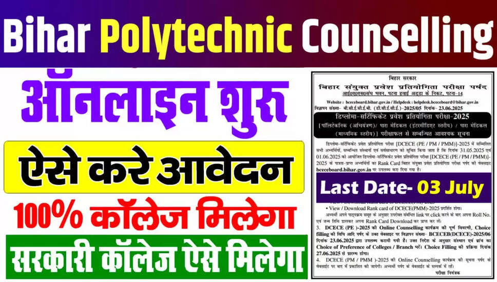 बिहार संयुक्त प्रवेश प्रतियोगिता परीक्षा बोर्ड (BCECEB)Bihar DCECE Polytechnic PP/ PMM सीट मैट्रिक्स, काउंसलिंग/ विकल्प भरने की प्रक्रिया 2025 |