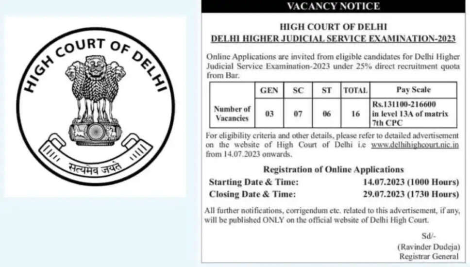 दिल्ली उच्च न्यायालय न्यायिक सेवा परीक्षा 2023 प्रारंभिक परीक्षा तिथि की घोषणा, ऑनलाइन आवेदन करें