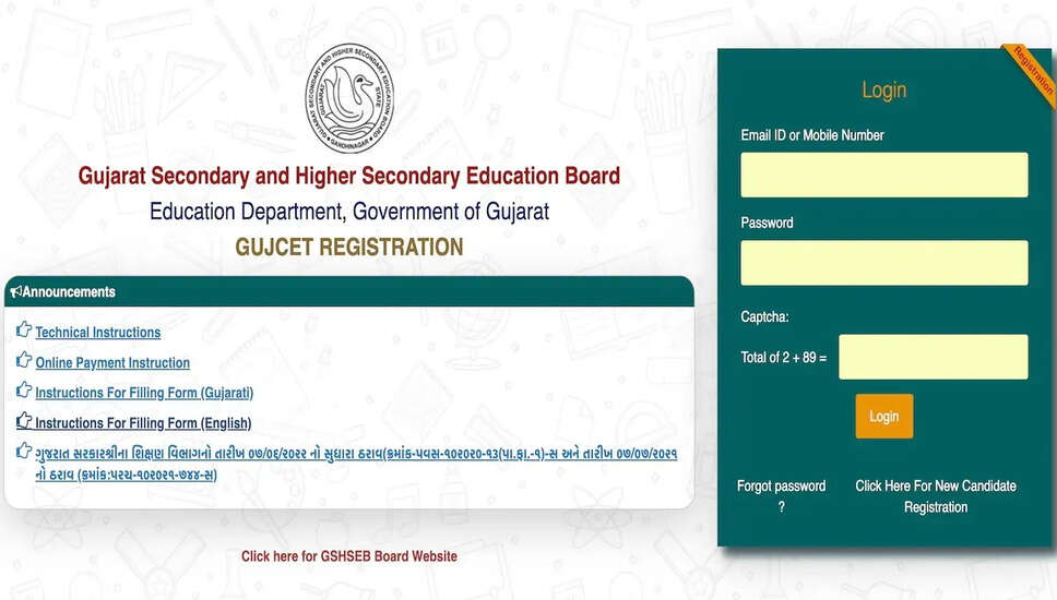 GUJCET 2024 आवेदन पत्र कैसे भरें? उम्मीदवार आधिकारिक वेबसाइट gujcet.gseb.org पर GUJCET के लिए पंजीकरण करने के लिए इन चरणों का पालन कर सकते हैं :