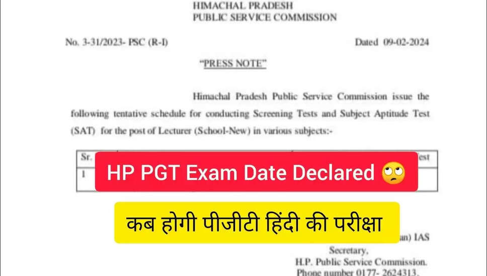 HPPSC PGT परीक्षा तिथि 2023: स्क्रीनिंग टेस्ट और विषय कुशलता परीक्षा की तारीखें घोषित