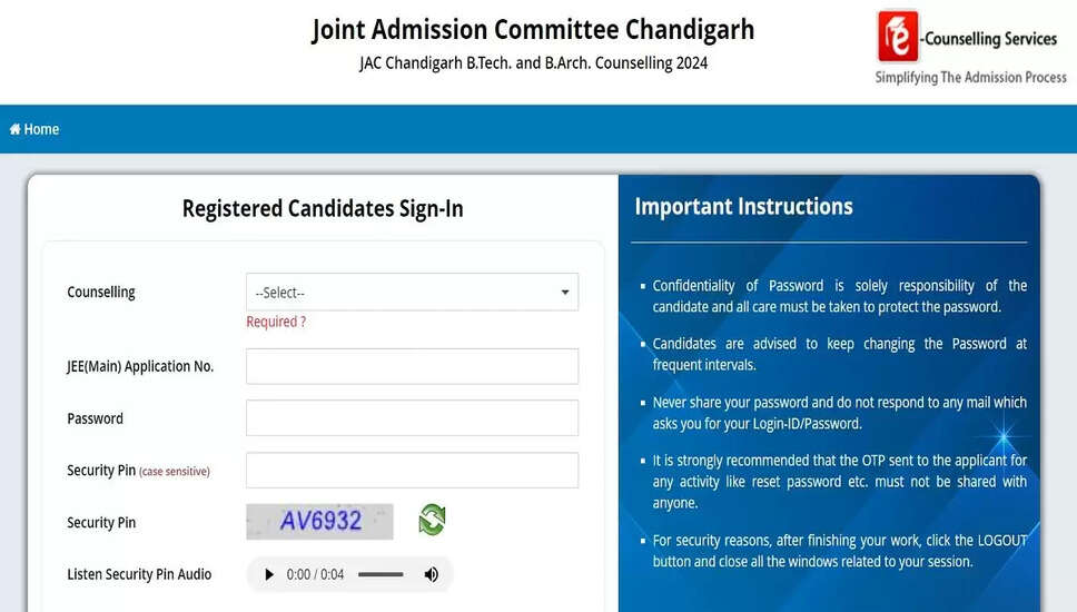 जेएसी चंडीगढ़ काउंसलिंग पंजीकरण ऑनलाइन पूरा करने के लिए इन चरणों का पालन करें: