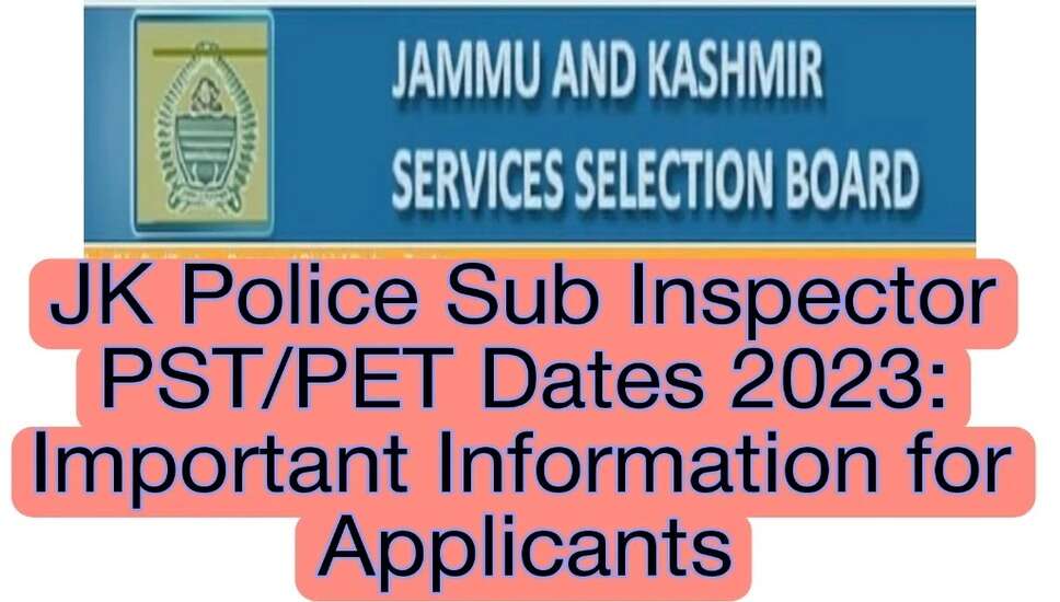 जम्मू और कश्मीर सेवा चयन बोर्ड (जेकेएसएसबी) ने सब इंस्पेक्टर भर्ती के संबंध में एक महत्वपूर्ण अपडेट जारी किया है। शारीरिक मानक परीक्षण (पीएसटी) और शारीरिक धीरज परीक्षण (पीईटी) की तारीखें घोषित की गई हैं, जो चयन प्रक्रिया में एक महत्वपूर्ण चरण को दर्शाती हैं। यहां उम्मीदवारों के लिए इस भर्ती से संबंधित महत्वपूर्ण विवरण हैं: