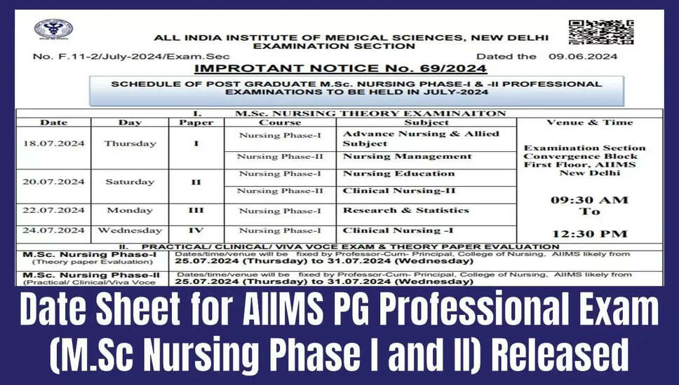 AIIMS PG प्रोफेशनल कोर्सेज के लिए MSc, MSc नर्सिंग परीक्षा अनुसूची 2024 जारी