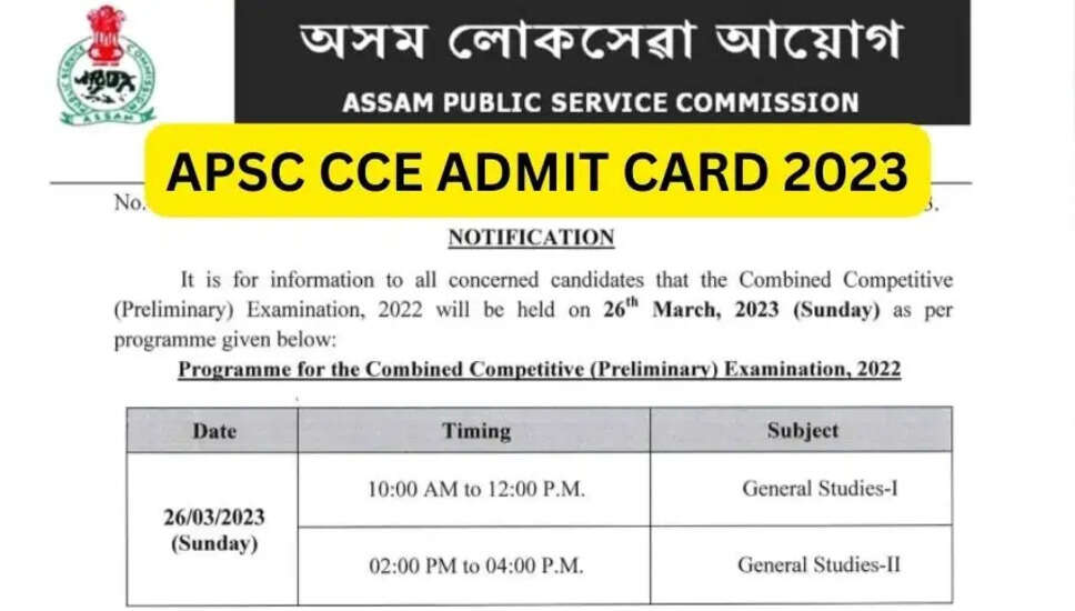 असम पीएससी संयुक्त प्रतियोगी परीक्षा 2023 की तारीख घोषित - प्रीलिम्स एडमिट कार्ड डाउनलोड करें