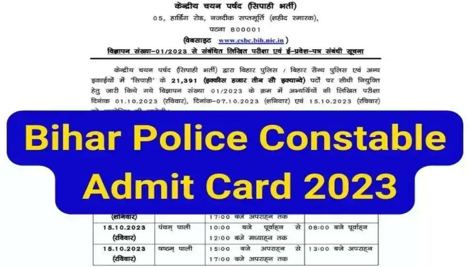 बिहार पुलिस कांस्टेबल भर्ती 2023: नया परीक्षा तिथि और एडमिट कार्ड जारी