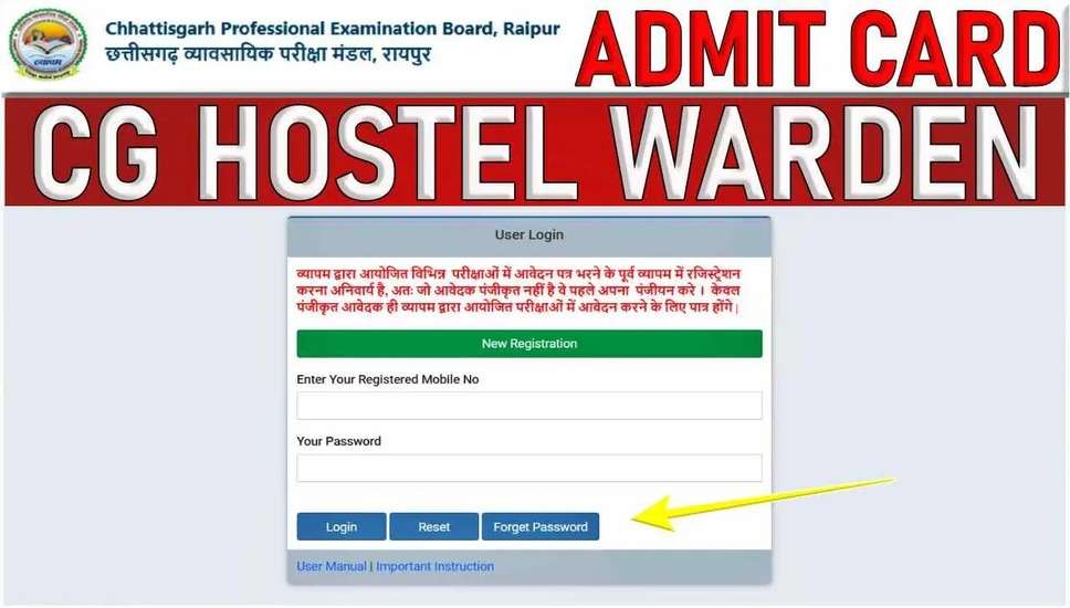 CGPEB हॉस्टल सुपरिटेंडेंट 2024: लिखित परीक्षा का एडमिट कार्ड अब डाउनलोड के लिए उपलब्ध