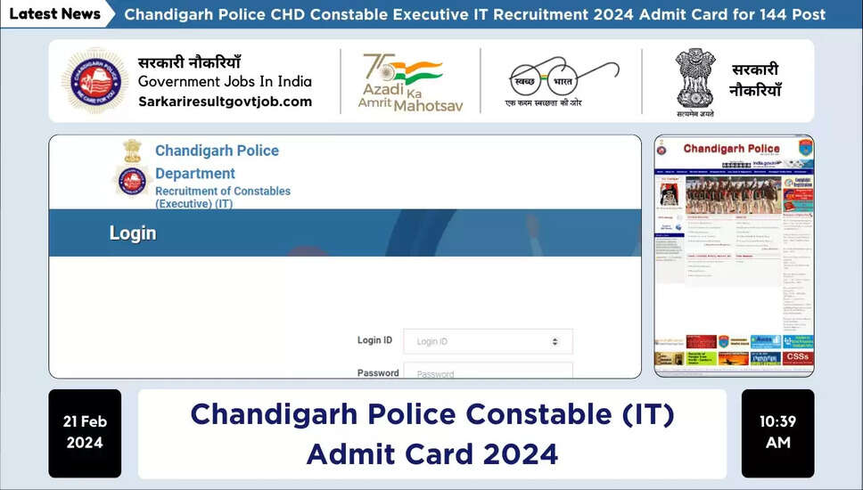 - "चंडीगढ़ पुलिस में कांस्टेबल (कार्यकारी) (आईटी) की भर्ती के लिए लिखित परीक्षा का प्रवेश पत्र डाउनलोड करें" शीर्षक वाले लिंक को देखें और उस पर क्लिक करें।