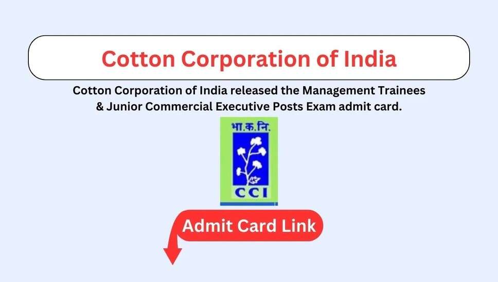 कॉटन कॉर्पोरेशन ऑफ इंडिया ने 2023 में विभिन्न रिक्तियों के लिए एडमिट कार्ड जारी किया है। यहां आपको जानने के लिए सभी आवश्यक विवरण मिलेगा: