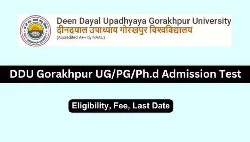 दीन दयाल उपाध्याय (DDU) गोरखपुर विश्वविद्यालय ने वर्ष 2024 के लिए विभिन्न स्नातक (UG), स्नातकोत्तर (PG), पीएचडी, डिप्लोमा और सर्टिफिकेट पाठ्यक्रमों के लिए प्रवेश की घोषणा की है। इच्छुक उम्मीदवार अब प्रवेश परीक्षा के लिए अपने एडमिट कार्ड डाउनलोड कर सकते हैं। पात्रता, प्रस्तावित पाठ्यक्रम, प्रवेश प्रक्रिया, आयु सीमा, सीट विवरण और अधिक के बारे में विस्तृत जानकारी के लिए अधिसूचना पढ़ें।