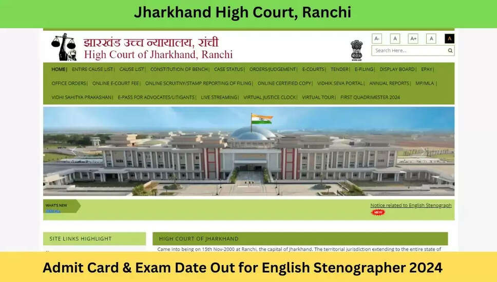 झारखंड हाई कोर्ट स्टेनोग्राफर 2024 अंग्रेजी स्टेनोग्राफी कौशल परीक्षा के लिए एडमिट कार्ड डाउनलोड करें