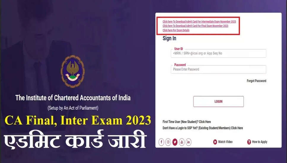 ICAI CA Admit Card 2023: सीए इंटर और फाइनल परीक्षा के एडमिट कार्ड जारी, ऐसे करें डाउनलोड
