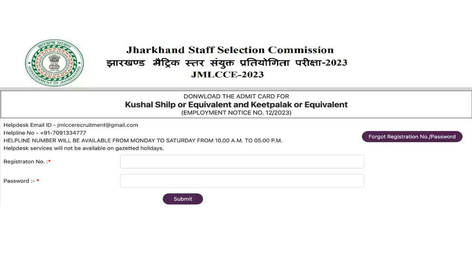 झारखंड कर्मचारी चयन आयोग (JSSC) ने झारखंड मैट्रिक स्तरीय संयुक्त प्रतियोगी परीक्षा (JMLCCE) 2023 के लिए भर्ती विज्ञापन जारी कर दिया है। इस भर्ती अभियान का उद्देश्य विभिन्न विभागों में 455 रिक्तियों को भरना है। इच्छुक उम्मीदवार जो पात्रता मानदंडों को पूरा करते हैं, वे ऑनलाइन आवेदन कर सकते हैं और अपने एडमिट कार्ड डाउनलोड कर सकते हैं।