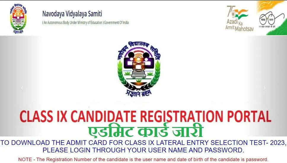जो माता-पिता अगले साल अपने बच्चों को नवोदय विद्यालय में कक्षा 6 में दाखिला दिलाना चाहते हैं, उनके लिए एक बड़ी खबर है। देश भर के नवोदय विद्यालयों ने वर्ष 2024-25 के लिए कक्षा 6 में प्रवेश के लिए नवोदय विद्यालय समिति द्वारा आयोजित प्रवेश परीक्षा में शामिल होने के इच्छुक उम्मीदवारों के लिए प्रवेश पत्र जारी कर दिए हैं।