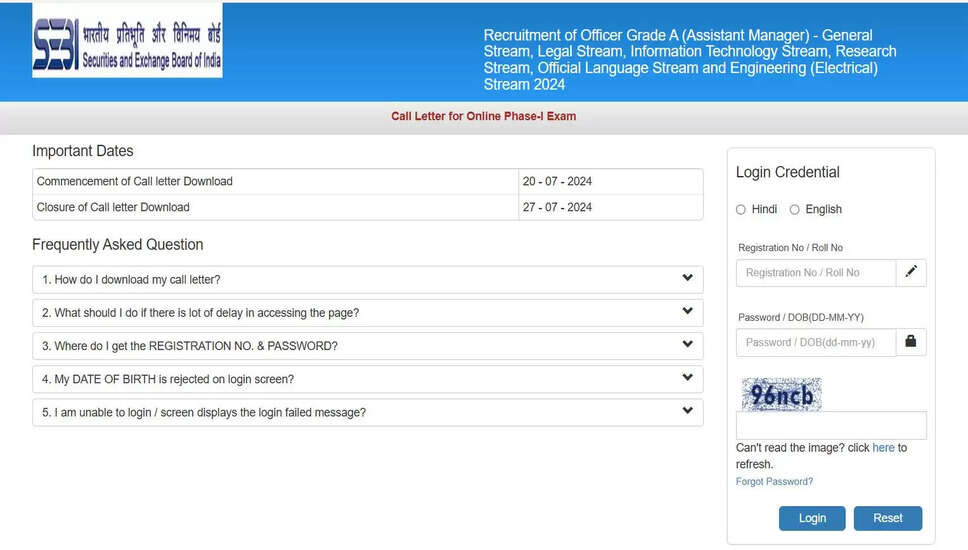 - सेबी वेबसाइट पर कॉल लेटर की उपलब्धता की तिथि (ऑनलाइन परीक्षाओं के लिए): ईमेल/एसएमएस के माध्यम से सूचित किया जाएगा
