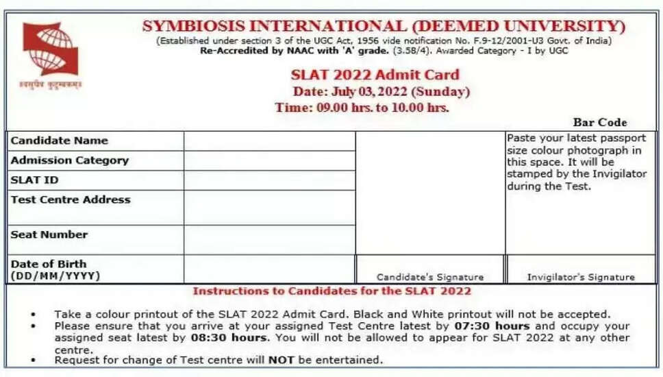 - SLAT 2024 एडमिट कार्ड की रंगीन मुद्रित प्रतियां संबंधित परीक्षा तिथियों पर परीक्षा केंद्र में ले जानी होंगी।