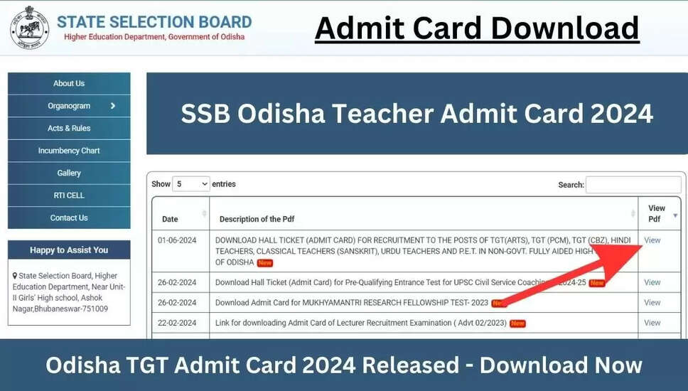 SSB, ओडिशा टीचिंग पदों के एडमिट कार्ड 2024 – लिखित परीक्षा के लिए एडमिट कार्ड डाउनलोड करें