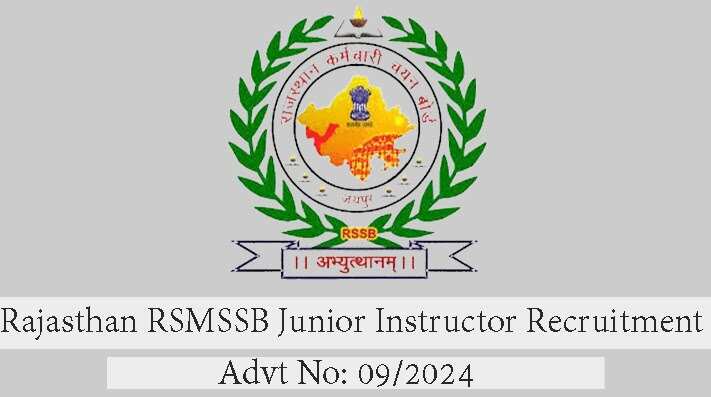 राजस्थान कर्मचारी चयन बोर्ड (RSSB/RSMSSB) ने 2024 में जूनियर इंस्ट्रक्टर पदों के लिए भर्ती अधिसूचना (विज्ञापन 09/2024) की घोषणा की है। इच्छुक उम्मीदवार 13 मार्च, 2024 से 11 अप्रैल, 2024 के बीच ऑनलाइन आवेदन कर सकते हैं। यहाँ प्रमुख विवरण दिए गए हैं: