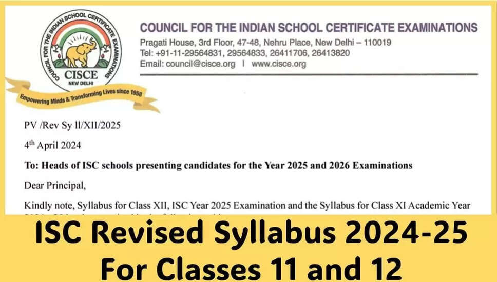 CISCE ने 2024-25 शैक्षणिक वर्ष के लिए कक्षा 11, 12 का संशोधित पाठ्यक्रम जारी किया; विवरण देखें