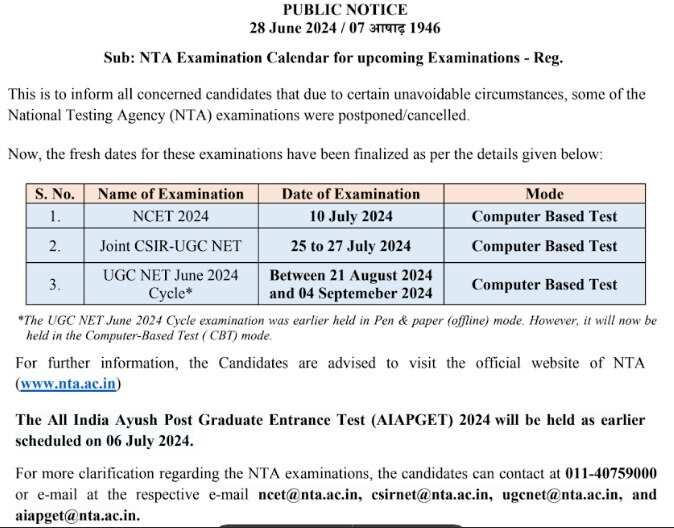 - नई परीक्षा तिथि: 21 अगस्त से 04 सितंबर 2024