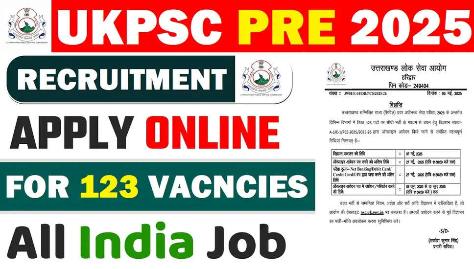 UKPSC प्री 2025: रिक्तियों का विवरणकुल पद: 123 पद