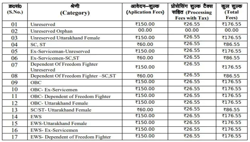 - अनआरक्षित / ओबीसी / ईडब्ल्यूएस के लिए: Rs. 176.55/- (आवेदन शुल्क Rs. 150/- + प्रोसेसिंग शुल्क Rs. 26.55)