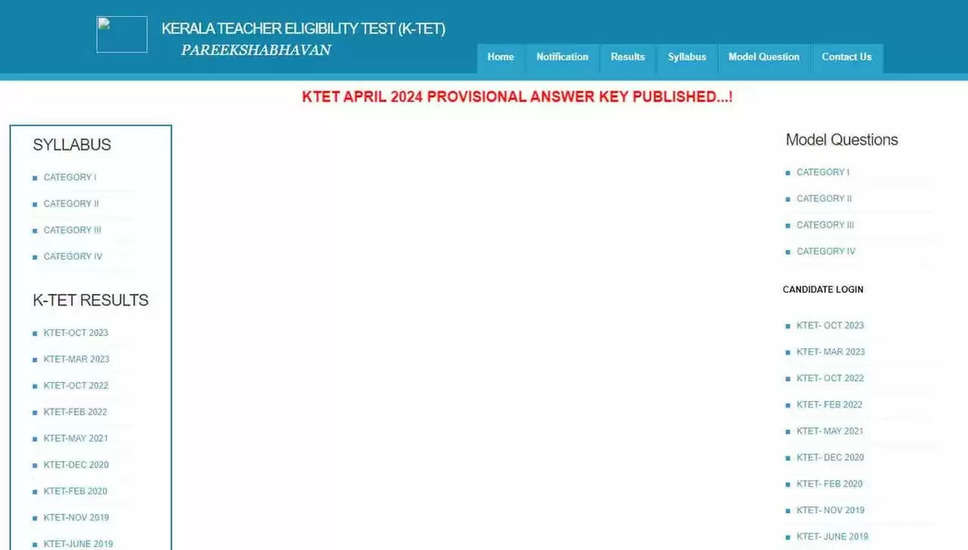 मुखपृष्ठ पर उत्तर कुंजी अनुभाग ढूंढें , “K-TET अप्रैल 2024 की संशोधित उत्तर कुंजी” टैब ढूंढें। -