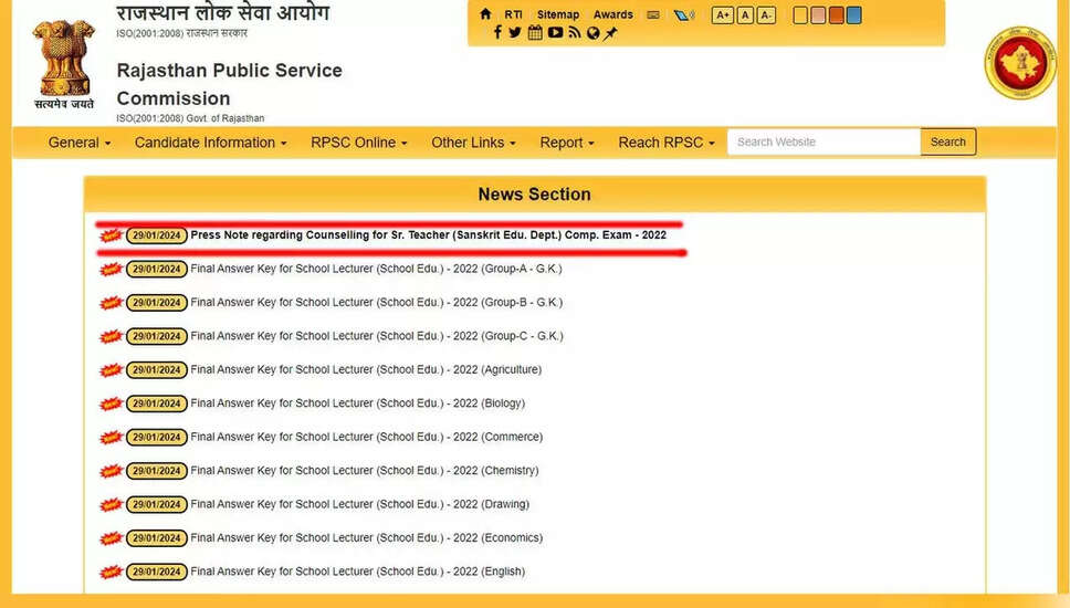 आधिकारिक वेबसाइट पर जाएं: राजस्थान लोक सेवा आयोग (आरपीएससी) की आधिकारिक वेबसाइट rpsc.rajasthan.gov.in पर जाएं ।