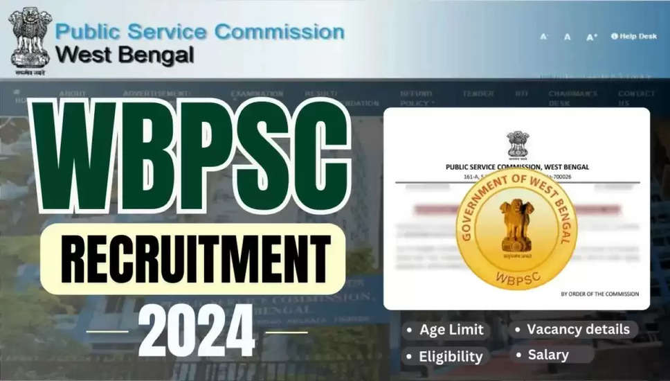 WBPSC ने मत्स्य विस्तार अधिकारी, सहायक मत्स्य अधिकारी, सहायक अनुसंधान अधिकारी, मत्स्य पर्यवेक्षक और परख सहायक सहित कई पदों के लिए भर्ती अभियान की घोषणा की है। पात्रता मानदंडों को पूरा करने वाले इच्छुक उम्मीदवारों को ऑनलाइन आवेदन करने के लिए आमंत्रित किया जाता है।