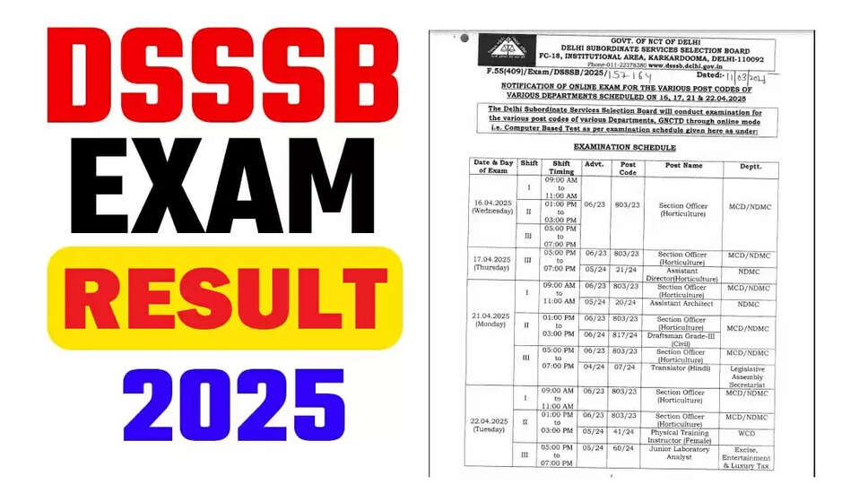DSSSB विभिन्न पदों के परिणाम की स्थिति 2025