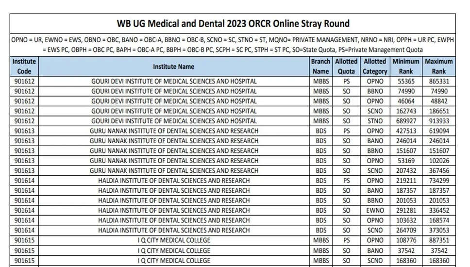 पश्चिम बंगाल NEET UG 2023 Stray Vacancy Allotment List जारी: तुरंत करें चेक