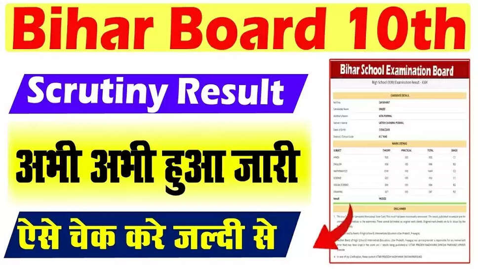 महत्वपूर्ण जानकारी: बिहार विद्यालय परीक्षा बोर्ड (BSEB) ने कक्षा 10वीं (मैट्रिक) परीक्षा का स्क्रूटिनी परिणाम जारी किया है। ये परीक्षाएं 17 से 25 फरवरी 2025 के बीच आयोजित की गई थीं। बिहार बोर्ड कक्षा 10वीं स्क्रूटिनी परिणाम 2025 को 20 मई 2025 को सुबह 10:00 बजे आधिकारिक रूप से प्रकाशित किया गया। छात्र जो अपने उत्तर पत्रों की पुनर्मूल्यांकन के लिए आवेदन किए थे, वे नीचे दिए गए लिंक से अपने परिणाम देख सकते हैं।