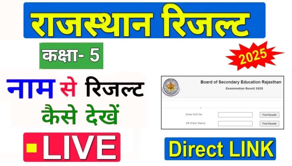 राजस्थान माध्यमिक शिक्षा बोर्ड ने कक्षा 5 के वार्षिक परीक्षा परिणाम 2025 की घोषणा की है। परीक्षा 07 से 16 अप्रैल 2025 के बीच आयोजित की गई थी, और परिणाम 30 मई 2025 को जारी किया गया। छात्र अपने रोल नंबर के माध्यम से ऑनलाइन परिणाम देख सकते हैं। इस लेख में परीक्षा की तिथियों, परिणाम देखने की प्रक्रिया और अन्य महत्वपूर्ण जानकारी का विवरण दिया गया है।