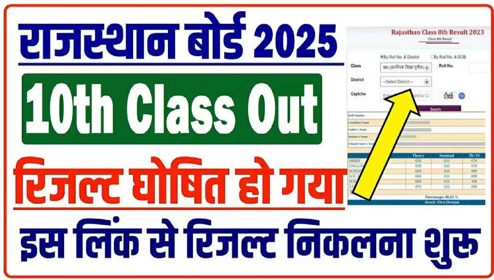 महत्वपूर्ण जानकारी: राजस्थान माध्यमिक शिक्षा बोर्ड (RBSE) ने आज 2025 की कक्षा 10वीं बोर्ड परीक्षा का परिणाम जारी किया है। यह परीक्षा 06 मार्च 2025 से 04 अप्रैल 2025 तक आयोजित की गई थी। राजस्थान बोर्ड कक्षा 10वीं परिणाम 2025 आधिकारिक रूप से 28 मई 2025 को अपराह्न 4:00 बजे प्रकाशित किया गया। परीक्षा में शामिल होने वाले छात्र नीचे दिए गए लिंक से अपने परिणाम देख सकते हैं।