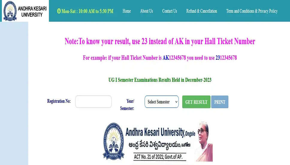 आंध्र केसरी विश्वविद्यालय परिणाम २०२४ बाहर, ए के यु जी प्रथम सेमेस्टर मार्कशीट डाउनलोड करें