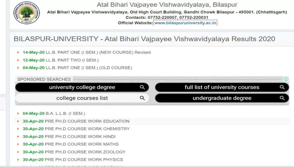 बिलासपुर विश्वविद्यालय परिणाम 2024 घोषित: अपनी यूजी और पीजी मार्कशीट देखें
