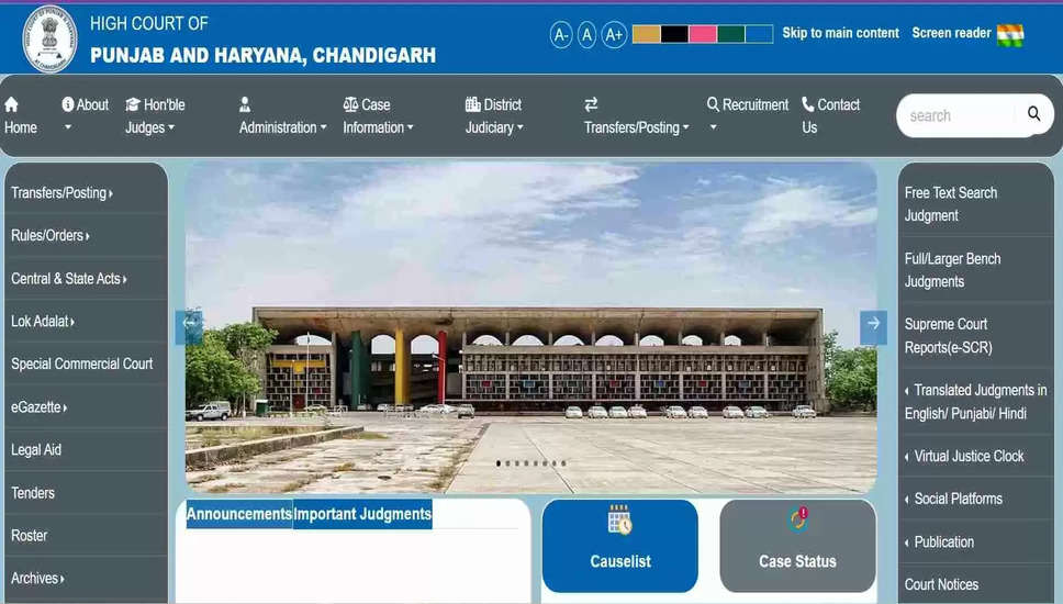 चरण 1: आधिकारिक पोर्टल पर जाएं पंजाब और हरियाणा उच्च न्यायालय, चंडीगढ़ की आधिकारिक वेबसाइट highcourtchd.gov.in पर जाएं ।