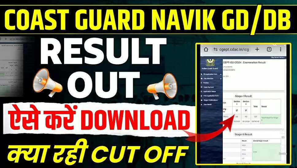 Coast Guard Navik CGEPT 02/2025 Stage I परिणाम 2025