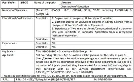 | 37/22 | पुस्तकालय अध्यक्ष | 100 | स्नातक की डिग्री (प्रासंगिक अनुशासन) |