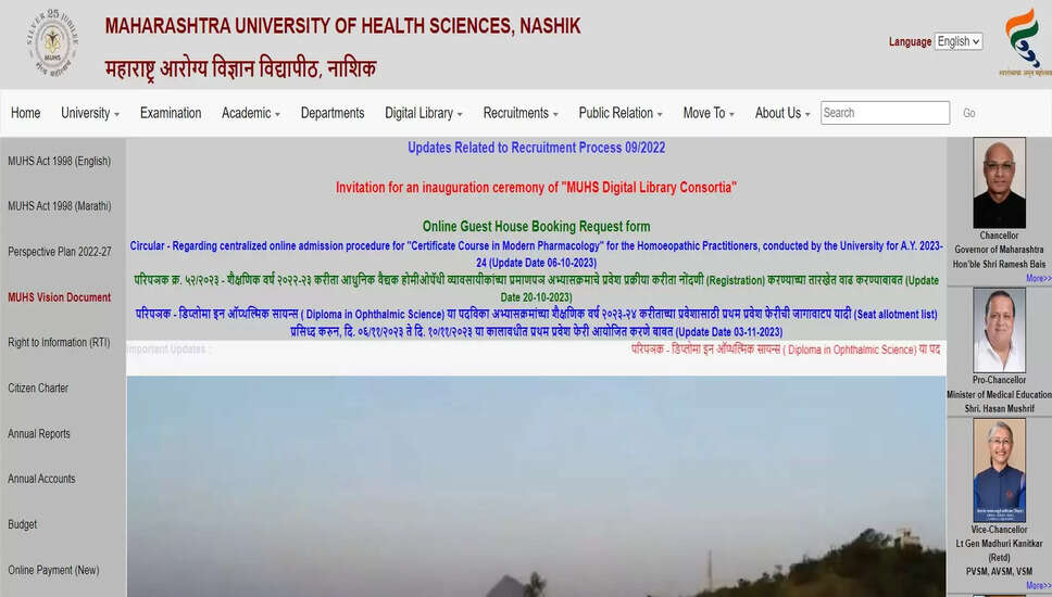 - आधिकारिक वेबसाइट पर जाएँ: विश्वविद्यालय की आधिकारिक वेबसाइट - muhs.ac.in पर जाएँ ।