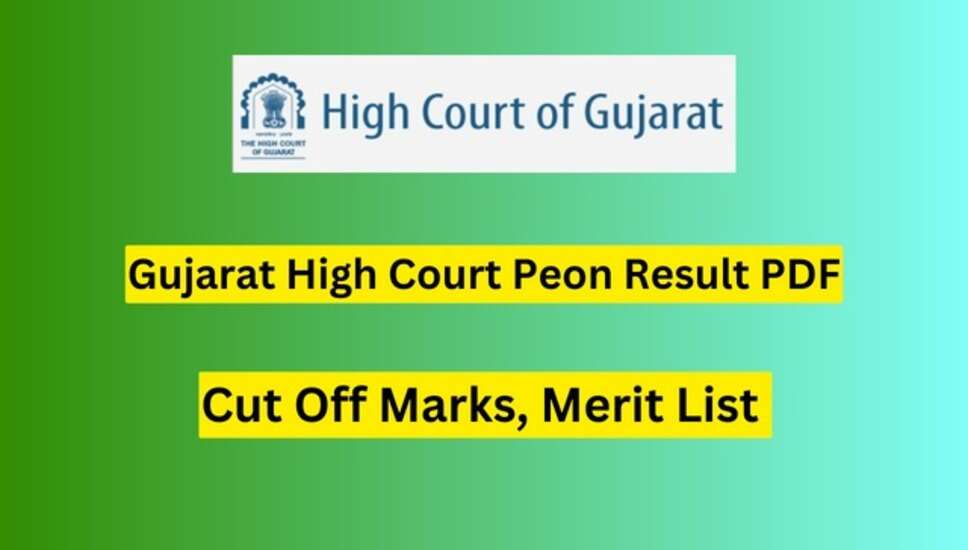 - गुजरात उच्च न्यायालय पीओन परीक्षा 2023 का परिणाम गुजरात उच्च न्यायालय द्वारा 10 नवम्बर को आधिकारिक रूप से घोषित किया गया है। उम्मीदवार अपने परिणामों और मेरिट सूची को आधिकारिक पोर्टल पर देख सकते हैं। परिणाम सीट नंबर, आवेदन संख्या या उम्मीदवार के नाम के आधार पर उपलब्ध हैं।